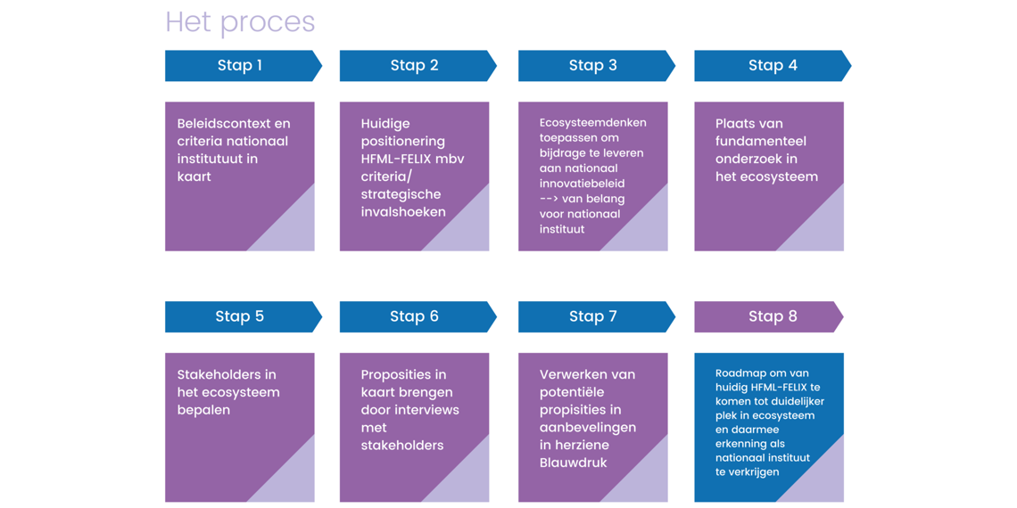 Wij hebben met HFML-FELIX de onderstaande processtappen doorlopen. Volgens HFML-FELIX is het proces zeer nuttig geweest, al was het voor hen af en toe wel ‘een rollercoaster’. Dit proces hadden ze zonder KplusV niet zo snel en gestructureerd kunnen doorlopen.