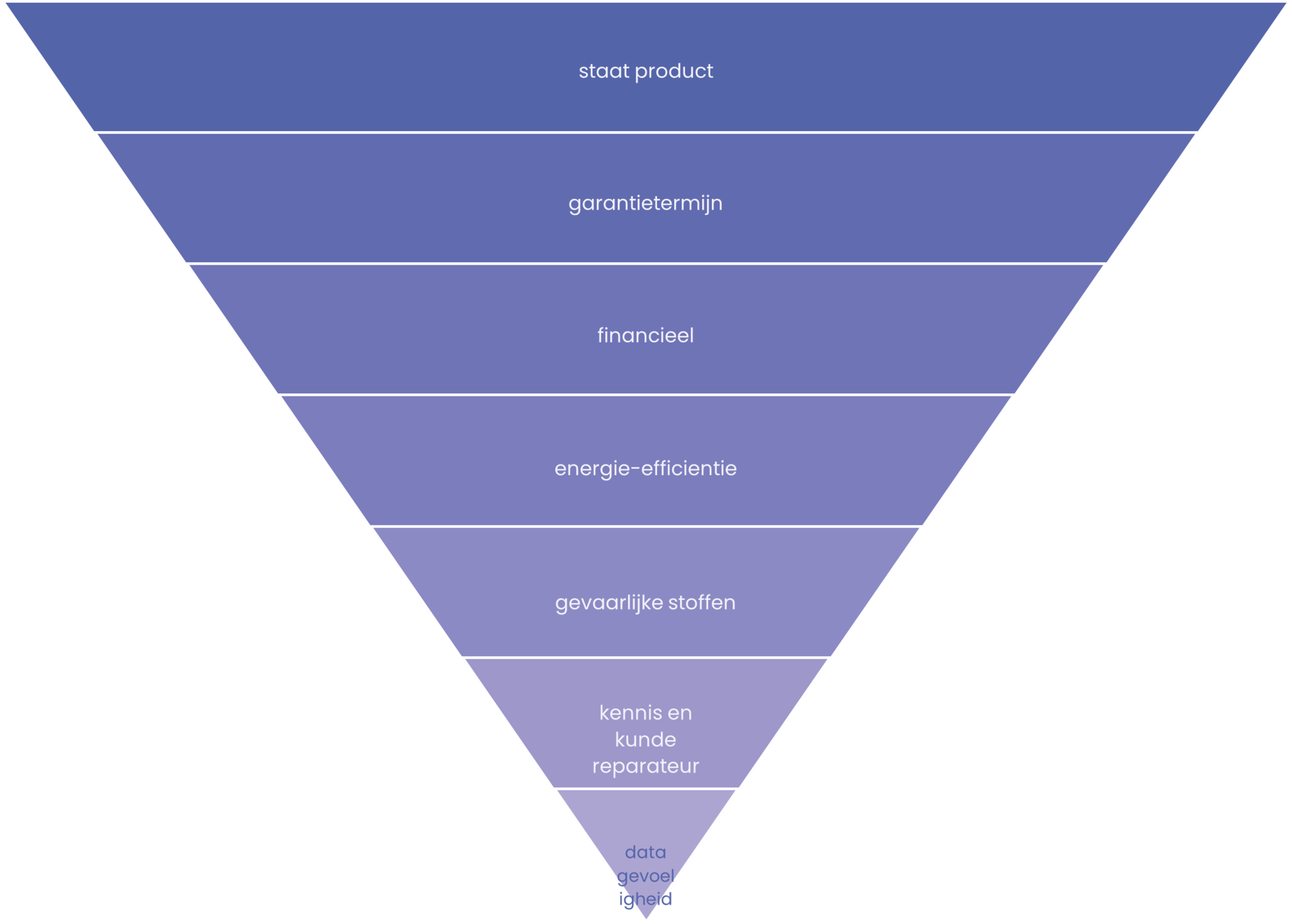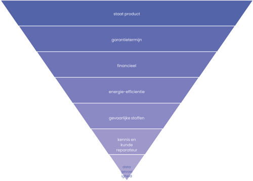 Een inschatting van deze factoren per productcategorie geeft inzicht in de potentie van verschillende producten. Hieruit blijkt dat vooral grote apparatuur geschikt is voor levensduurverlenging: door de grootte en prijs van deze producten zullen consumenten het product niet snel weggooien. Daarnaast is bij grote apparatuur hygiëne en datagevoeligheid minder een belemmerende factor dan bij kleinere apparatuur. Gezien ook de beperkte reparatie infrastructuur voor deze productgroep, ligt hier veel potentie voor hoogwaardig hergebruik.