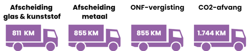 CO2-uitstoot bij verbranding is een stuk hoger dan bij transport. Een afvalverbrandingsinstallatie (AVI) met afscheiding voor glas, kunststof en metaal bespaart 190 kg CO2 per ton restafval. Ter vergelijking: deze besparing staat gelijk aan 1.600 kilometer transport met een dieselvrachtwagen. In het onderstaande figuur staat per maatregel de transportafstand die gelijkstaat aan de gereduceerde hoeveelheid CO2.
