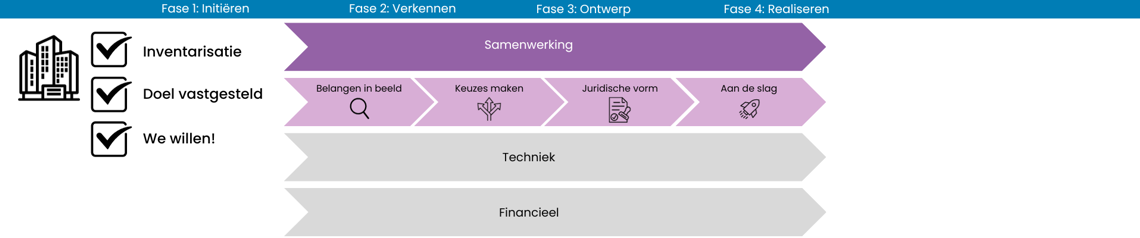 Heb je je samen met andere ondernemers op het terrein verenigd? En is de ambitie uitgesproken om samen een energiehub te realiseren? En wil je direct aan de slag met het afwegen van de juiste organisatievorm? Download ons stappenplan.
