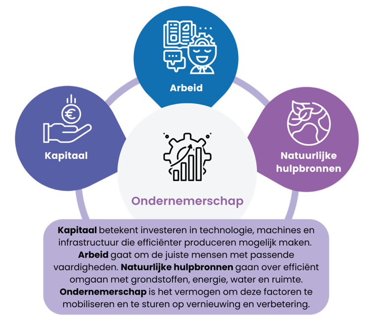 - Kapitaal: investeren in technologie, machines en infrastructuur