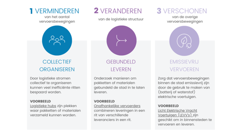 “Bij zero emissie stadslogistiek wordt vaak al snel gedacht aan het ‘verschonen’ van de bestaande logistiek. Maar wil je gaan voor een aantrekkelijke en leefbare binnenstad? Gebruik dan dit moment om de logistieke bewegingen ook te verminderen en veranderen. Dat vraagt om een actieve rol van de gemeente.”