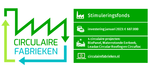 De vier bedrijven en projecten die geselecteerd zijn voor een bijdrage uit het fonds zijn BioPanel, Waterronde Eerbeek, Leadax Circular Roofing en Circufloc.