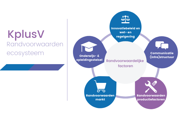 Een goede ecosysteemanalyse brengt de kansen voor verbetering in beeld en helpt de samenwerking zo soepel mogelijk te laten verlopen. We besteden aandacht aan alle factoren in de context. Van beleid en wet- en regelgeving tot en met onderwijs. We gebruiken hiervoor ons Randvoorwaarden ecosysteem-model.
