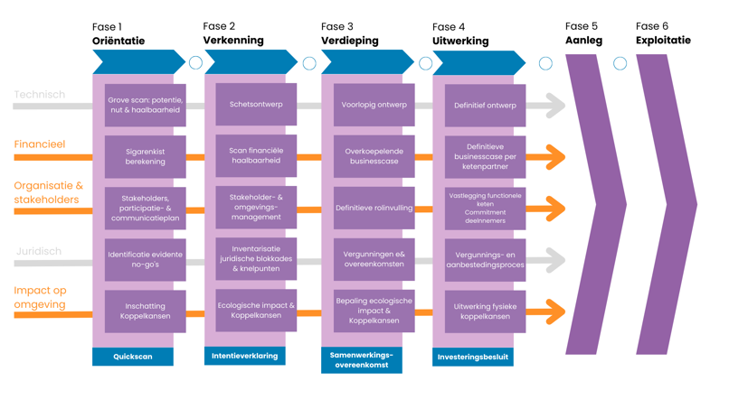 - het besluitvormingsproces met de organisatie en de stakeholders. We zorgen voor procesbegeleiding en vormen een coalitie van partijen die betrokken zijn bij de aanleg van het warmtenet. Wie moet worden betrokken en wie heeft welke rol? We begeleiden het besluitvormingsproces.